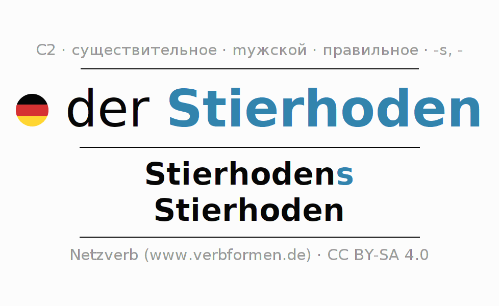 - Единственное число: der Stierhoden, des Stierhodens, dem Stierhoden, den Stierhoden