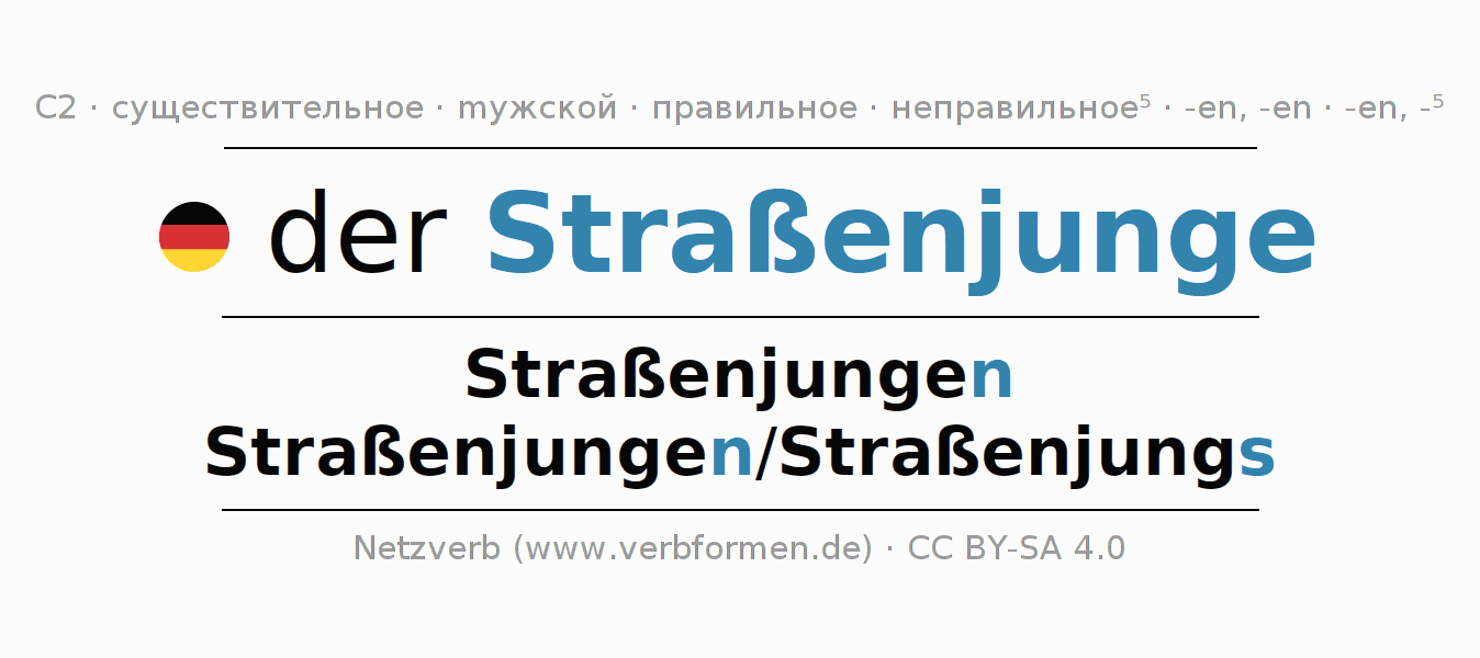 - Единственное число: der Straßenjunge, des Straßenjungen, dem Straßenjungen, den Straßenjungen
