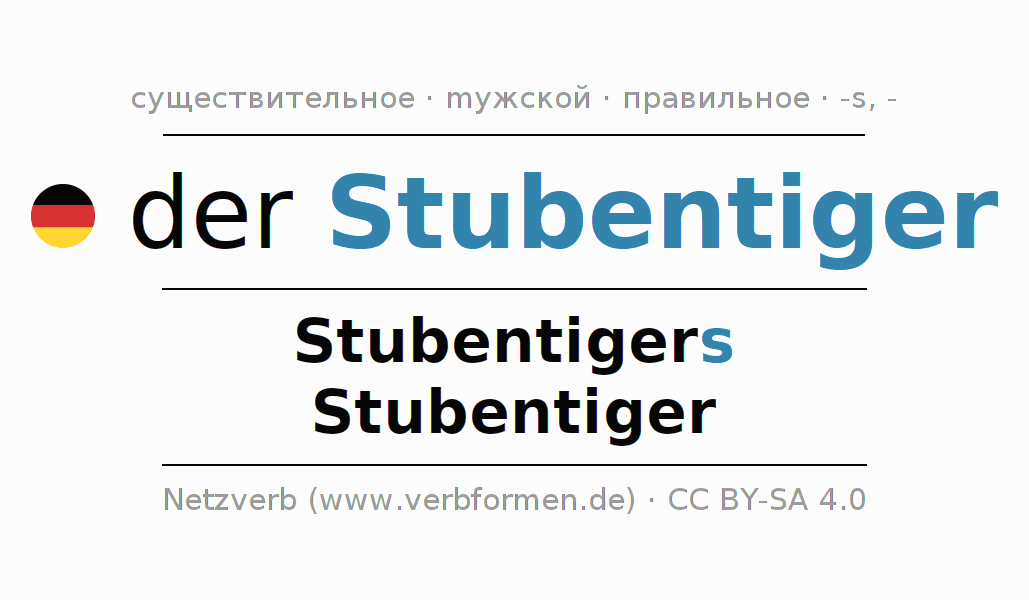- Множественное число: die Stubentiger, der Stubentiger, den Stubentigern, die Stubentiger