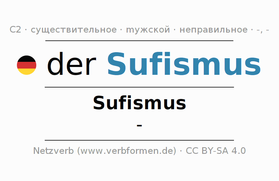 - Единственное число: der Sufismus, des Sufismus, dem Sufismus, den Sufismus