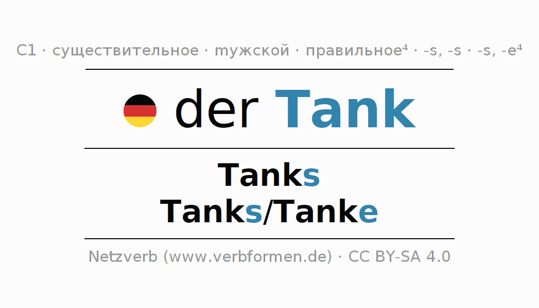 - Единственное число: der Tank, des Tanks, dem Tank, den Tank