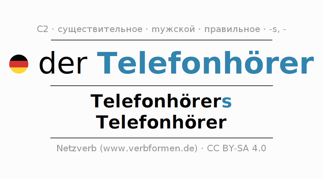 - Множественное число: die Telefonhörer, der Telefonhörer, den Telefonhörern, die Telefonhörer