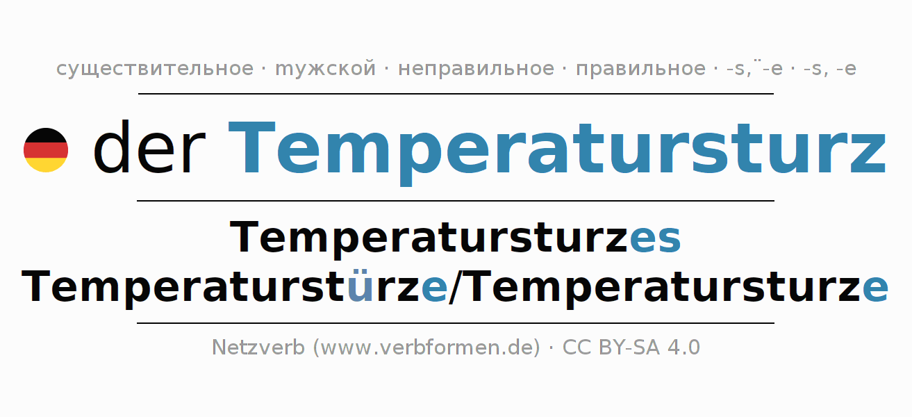 | Им. | der Temperatursturz | die Temperaturstürze/Temperatursturze |
