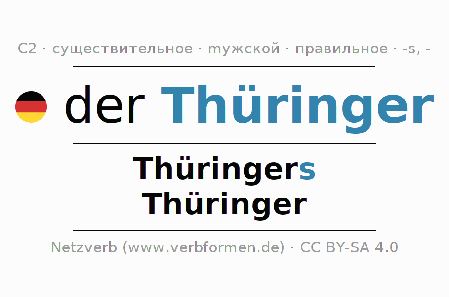 - Единственное число: der Thüringer, des Thüringers, dem Thüringer, den Thüringer
