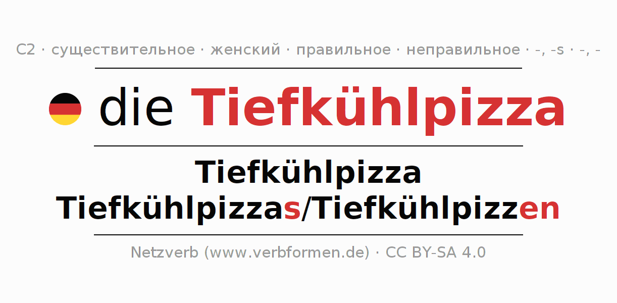 - Единственное число: die Tiefkühlpizza, der Tiefkühlpizza, der Tiefkühlpizza, die Tiefkühlpizza