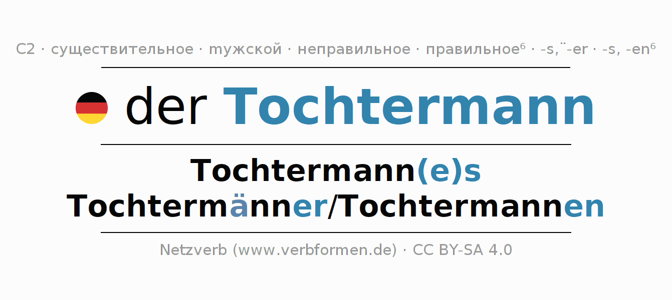 | Им. | der Tochtermann | die Tochtermänner/Tochtermannen |