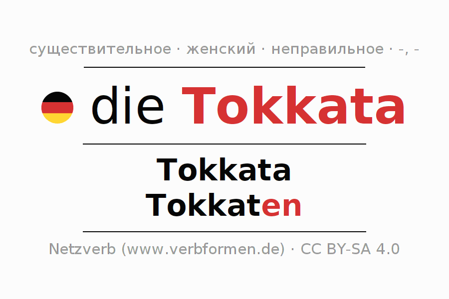 - Единственное число: die Tokkata, der Tokkata, der Tokkata, die Tokkata