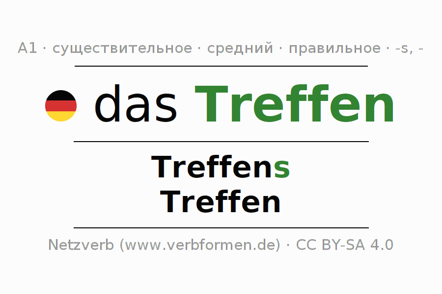 - Множественное число: die Treffen, der Treffen, den Treffen, die Treffen