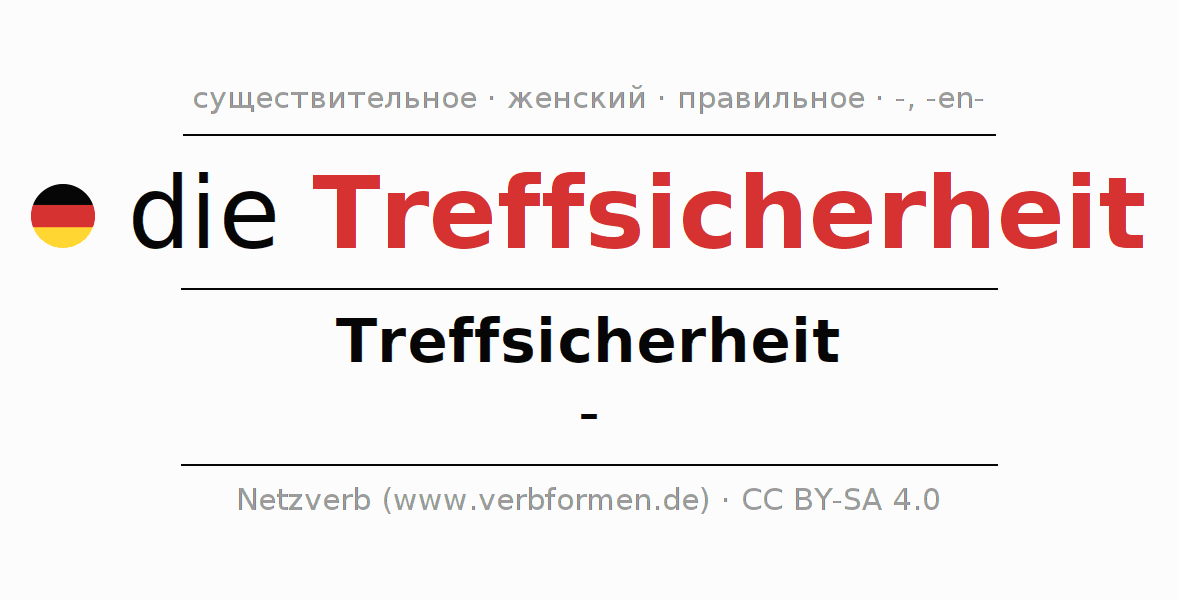 - Единственное число: die Treffsicherheit, der Treffsicherheit, der Treffsicherheit, die Treffsicherheit