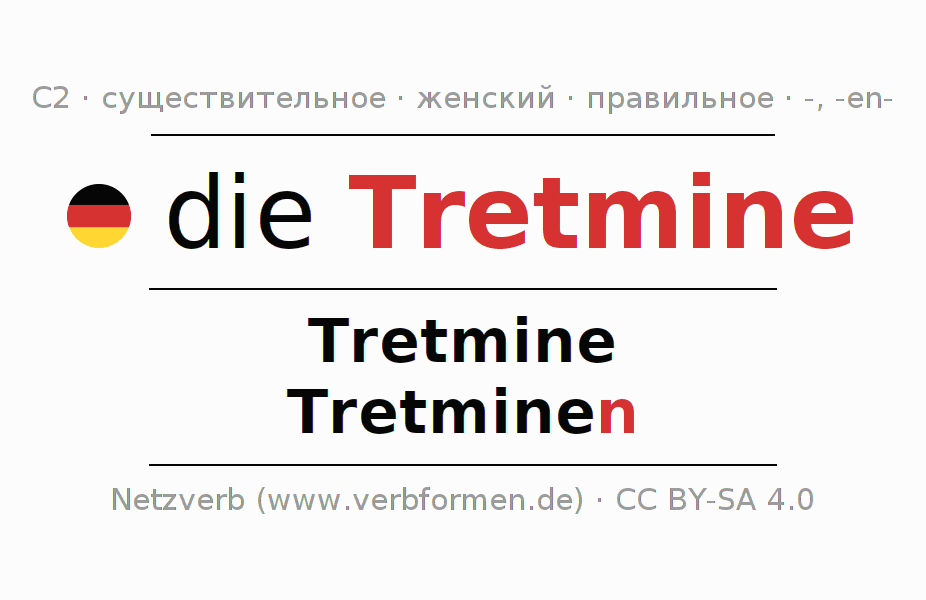 - Единственное число: die Tretmine, der Tretmine, der Tretmine, die Tretmine