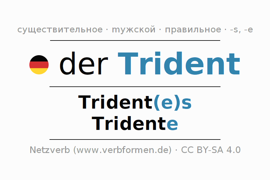 - Единственное число: der Trident, des Trident(e)s, dem Trident(e), den Trident