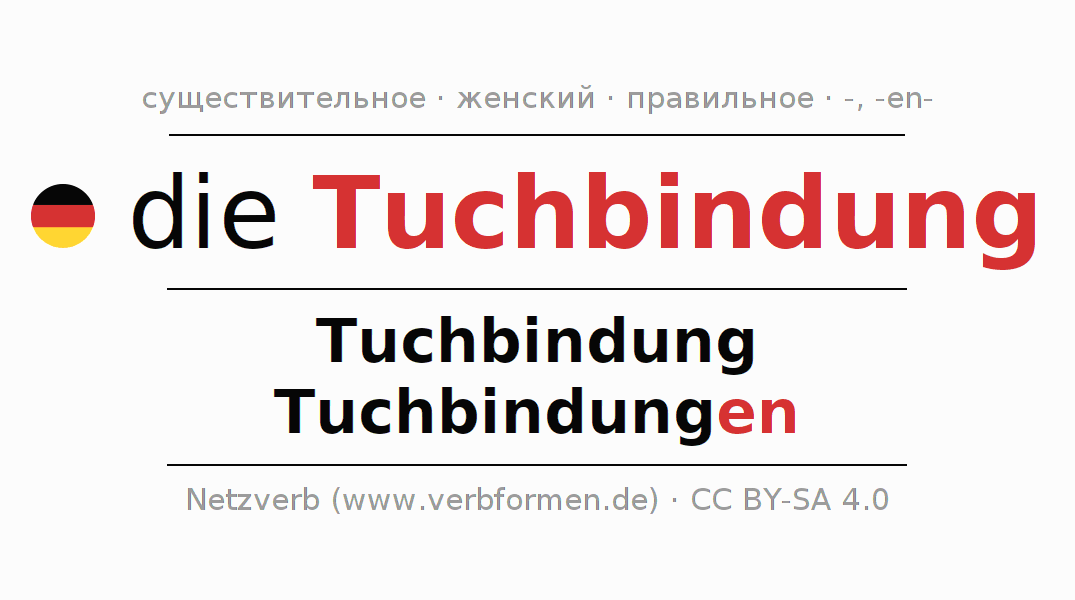 - Единственное число: die Tuchbindung, der Tuchbindung, der Tuchbindung, die Tuchbindung