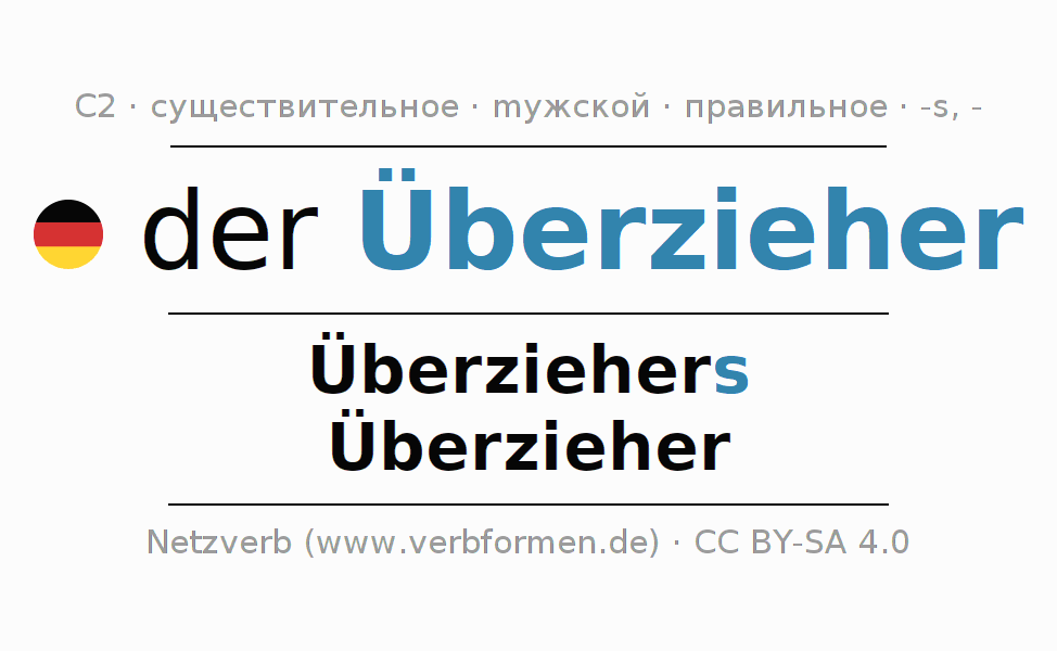 - Единственное число: der Überzieher, des Überziehers, dem Überzieher, den Überzieher