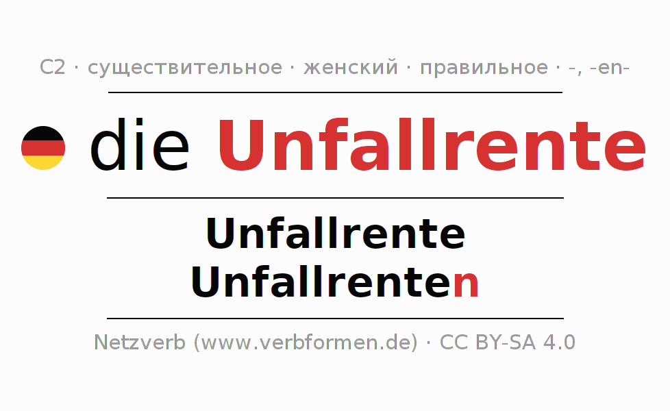- Единственное число: die Unfallrente, der Unfallrente, der Unfallrente, die Unfallrente