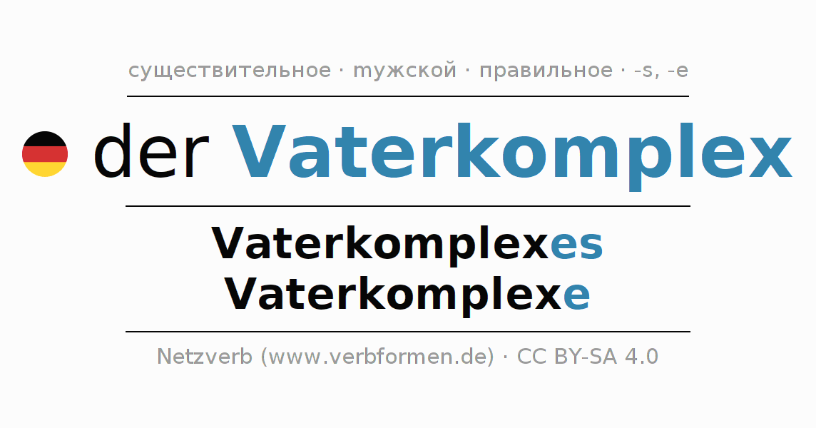 - Единственное число: der Vaterkomplex, des Vaterkomplexes, dem Vaterkomplex(e), den Vaterkomplex