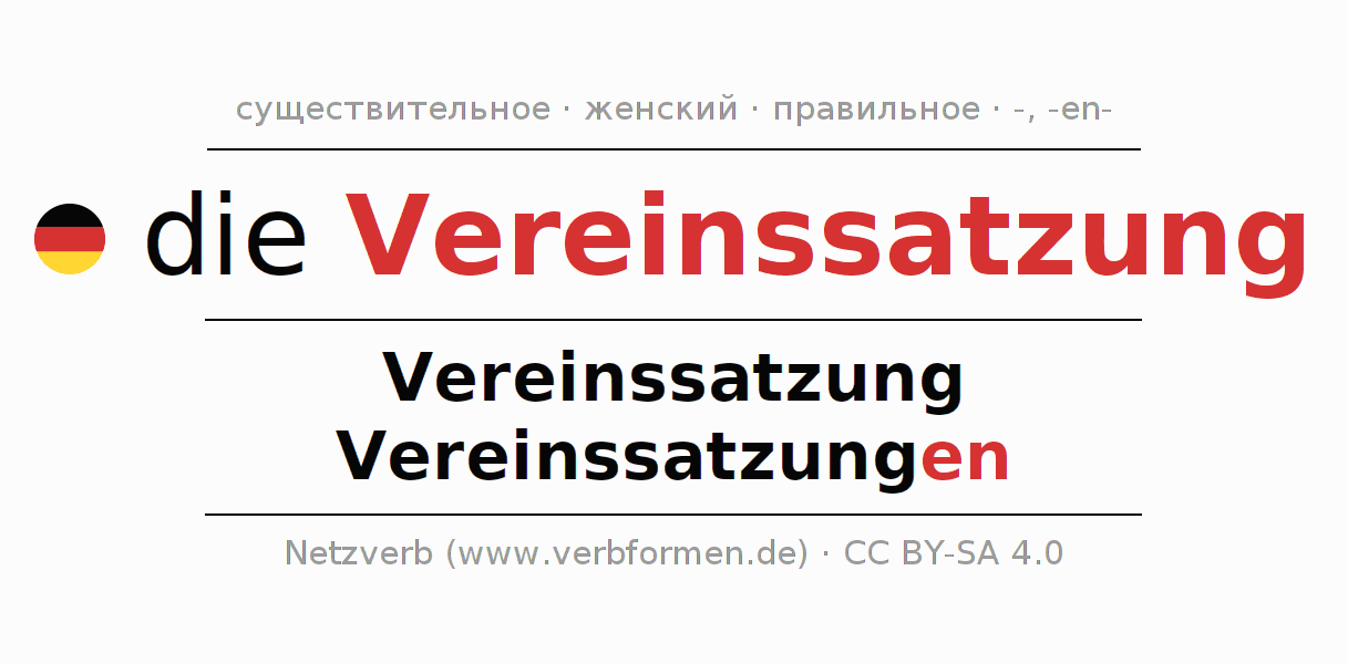 - Множественное число: die Vereinssatzungen, der Vereinssatzungen, den Vereinssatzungen, die Vereinssatzungen