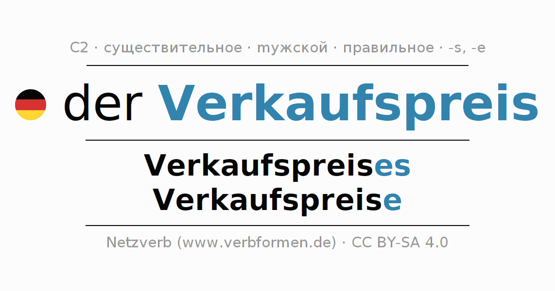 - Единственное число: der Verkaufspreis, des Verkaufspreises, dem Verkaufspreis(e), den Verkaufspreis