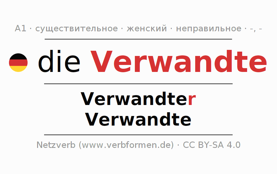 - Единственное число: die Verwandte, der Verwandten, der Verwandten, die Verwandte