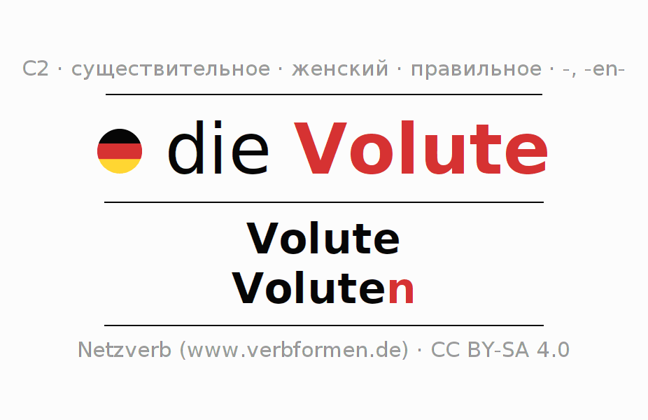 - Множественное число: die Voluten, der Voluten, den Voluten, die Voluten