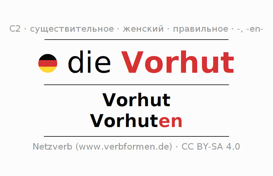 - Множественное число: die Vorhuten, der Vorhuten, den Vorhuten, die Vorhuten
