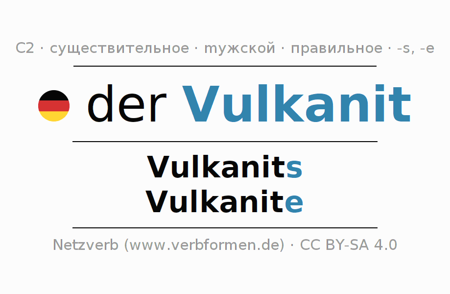 - Единственное число: der Vulkanit, des Vulkanits, dem Vulkanit, den Vulkanit