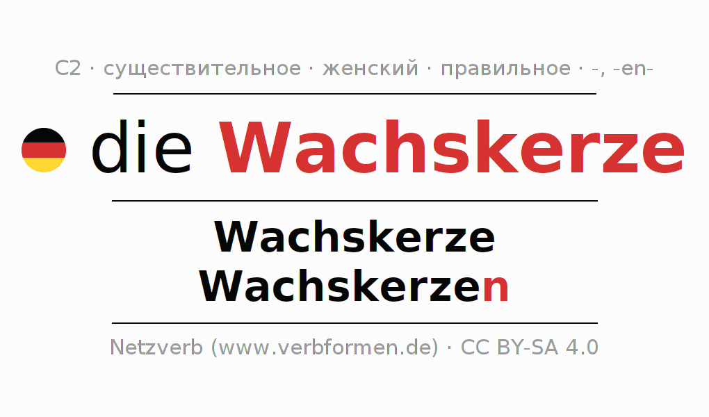 - Единственное число: die Wachskerze, der Wachskerze, der Wachskerze, die Wachskerze