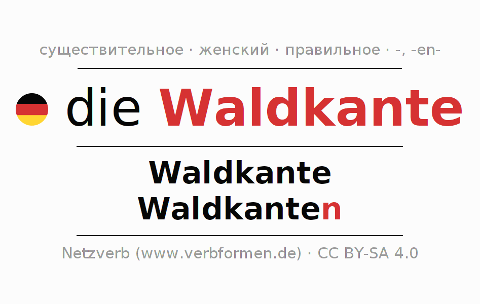 - Единственное число: die Waldkante, der Waldkante, der Waldkante, die Waldkante