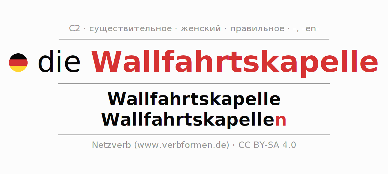 - Единственное число: die Wallfahrtskapelle, der Wallfahrtskapelle, der Wallfahrtskapelle, die Wallfahrtskapelle