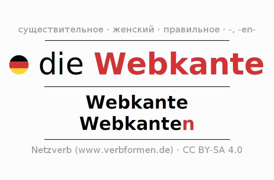 - Единственное число: die Webkante, der Webkante, der Webkante, die Webkante