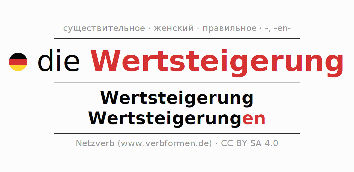- Единственное число: die Wertsteigerung, der Wertsteigerung, der Wertsteigerung, die Wertsteigerung