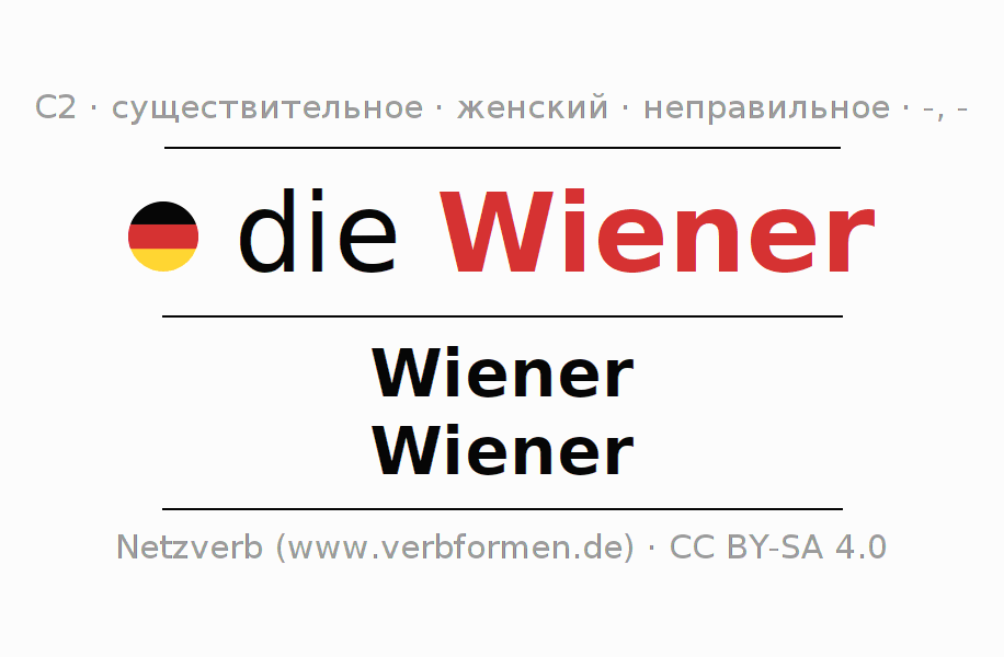 - Множественное число: die Wiener, der Wiener, den Wienern, die Wiener