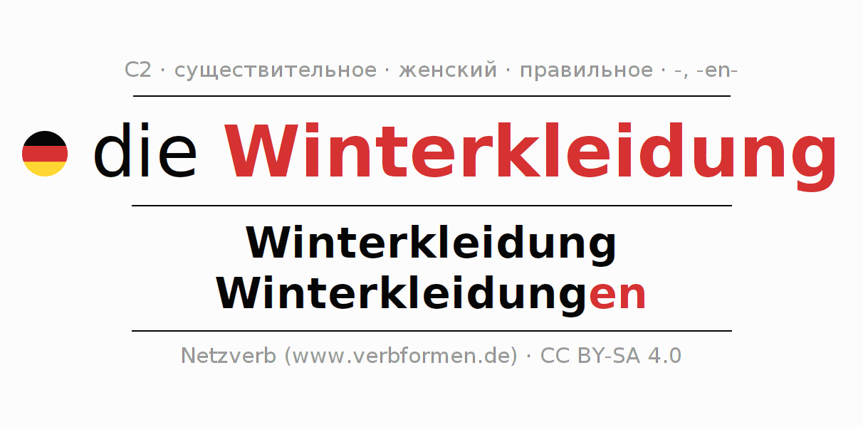 - Единственное число: die Winterkleidung, der Winterkleidung, der Winterkleidung, die Winterkleidung
