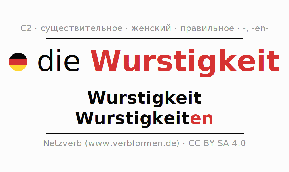 - Единственное число: die Wurstigkeit, der Wurstigkeit, der Wurstigkeit, die Wurstigkeit