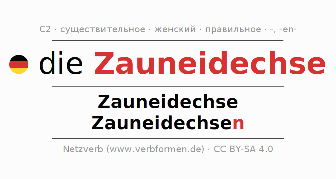 - Единственное число: die Zauneidechse, der Zauneidechse, der Zauneidechse, die Zauneidechse