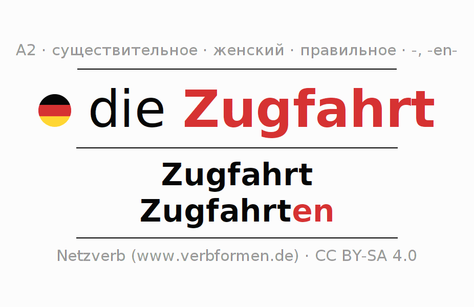 - Единственное число: die Zugfahrt, der Zugfahrt, der Zugfahrt, die Zugfahrt