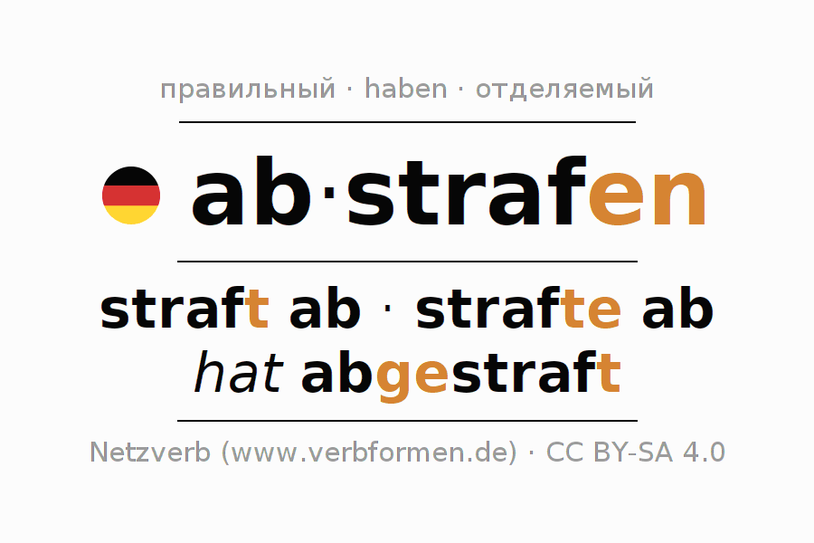 - Презенс: straf(e) (du) ab, strafen wir ab, straft (ihr) ab, strafen Sie ab