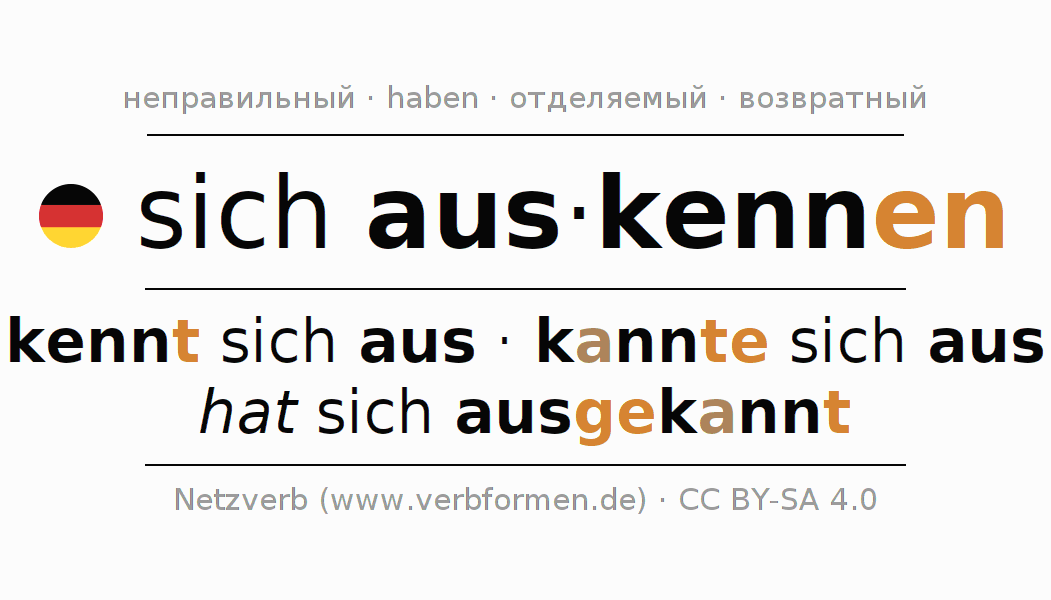 kennt sich aus · kannte sich aus · hat sich ausgekannt