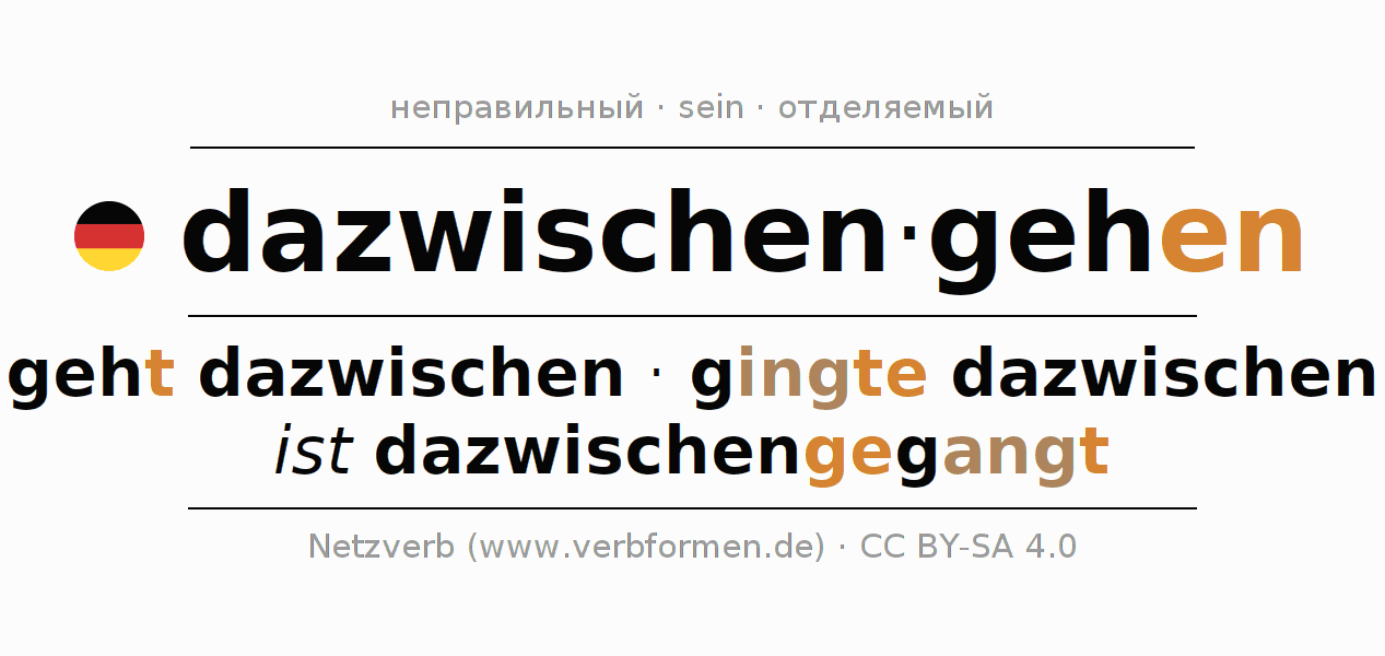 geht dazwischen · gingte dazwischen · ist dazwischengegangt