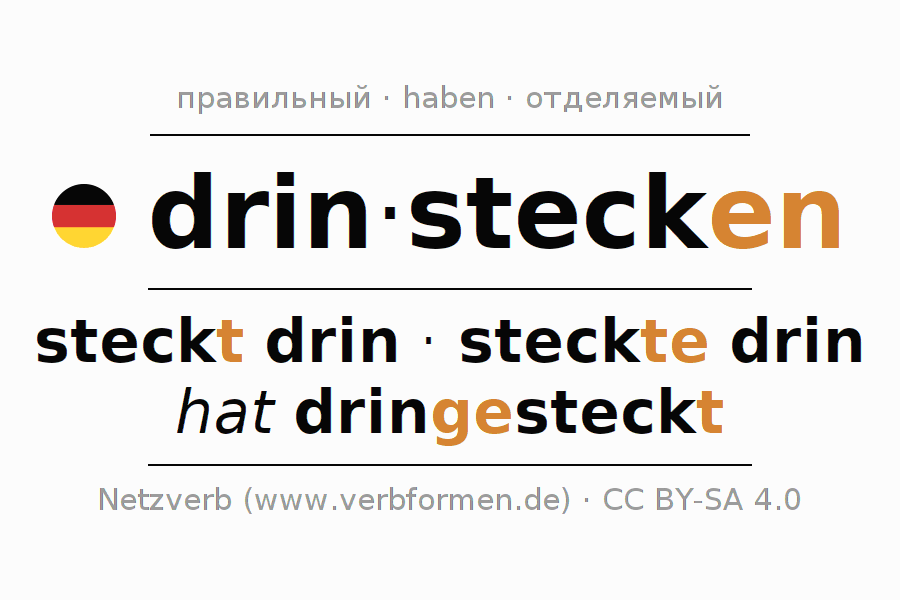 - Презенс: steck(e) (du) drin, stecken wir drin, steckt (ihr) drin, stecken Sie drin