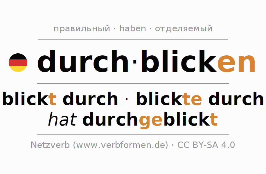 - Презенс: blick(e) (du) durch, blicken wir durch, blickt (ihr) durch, blicken Sie durch
