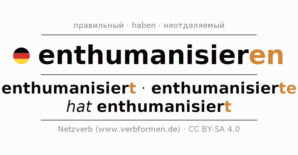 Все временные формы глагола и отглагольных форм enthumanisieren