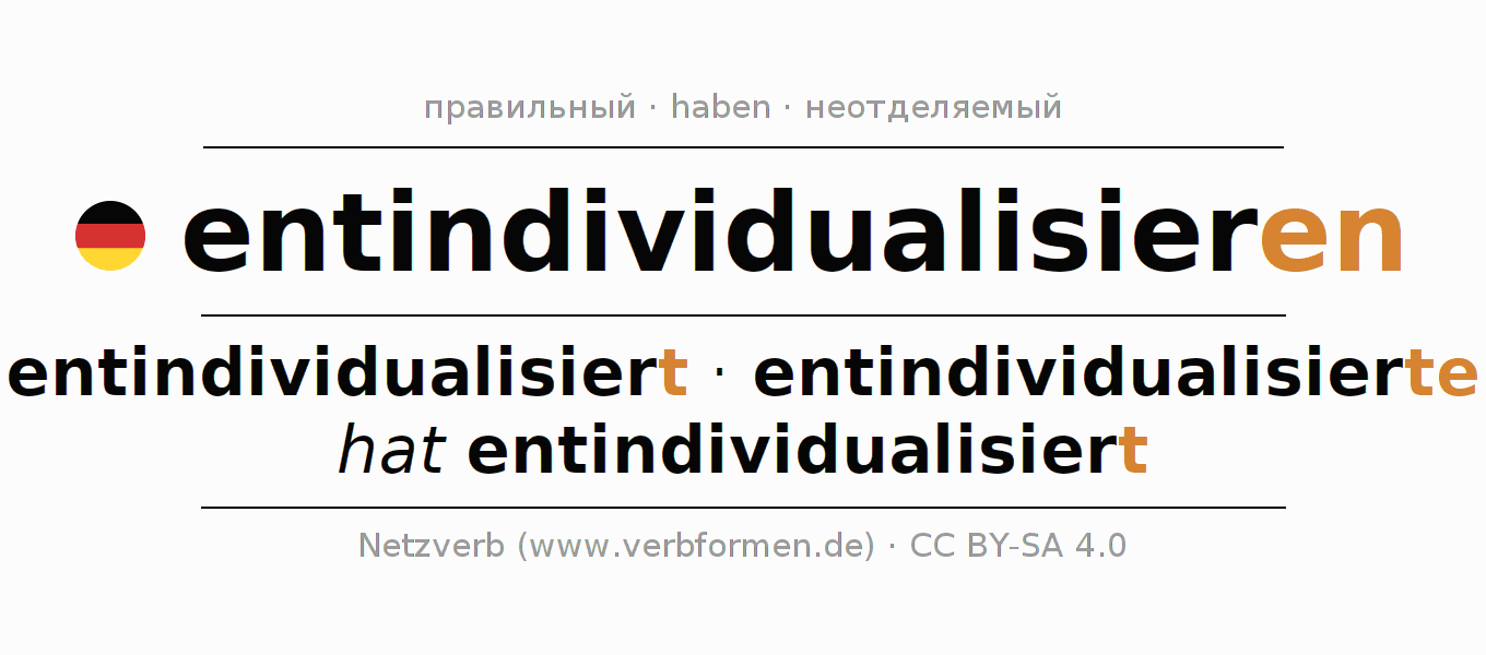 Все временные формы глагола и отглагольных форм entindividualisieren