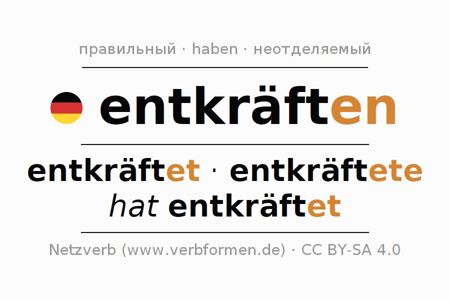 - Презенс: entkräft(e) (du), entkräften wir, entkräftet (ihr), entkräften Sie