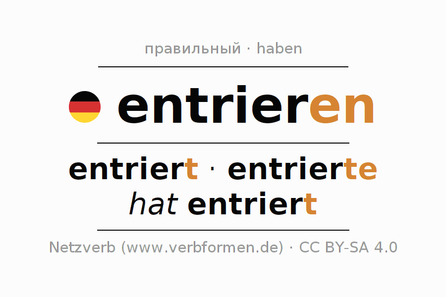 - Презенс: entrier(e) (du), entrieren wir, entriert (ihr), entrieren Sie