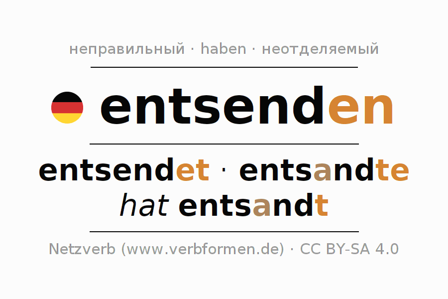- Презенс: entsend(e) (du), entsenden wir, entsendet (ihr), entsenden Sie