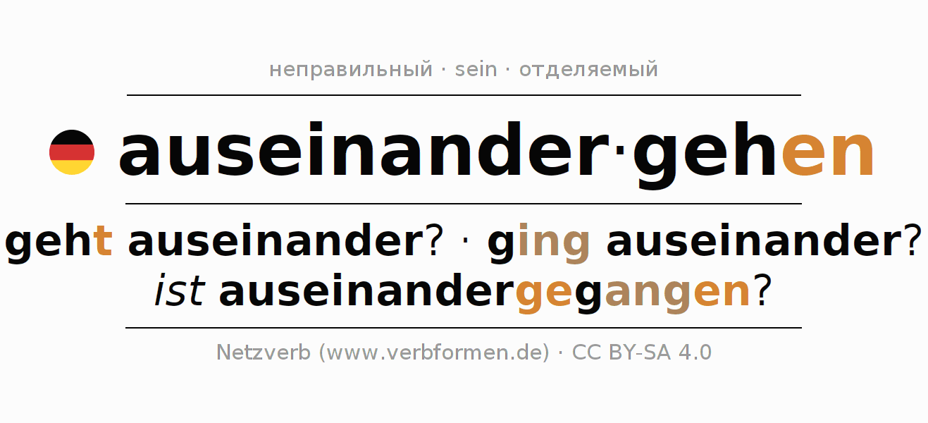 - Образование Инфинитив auseinandergehen