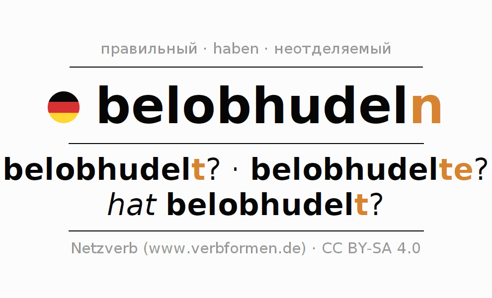 Все временные формы глагола и отглагольных форм belobhudeln