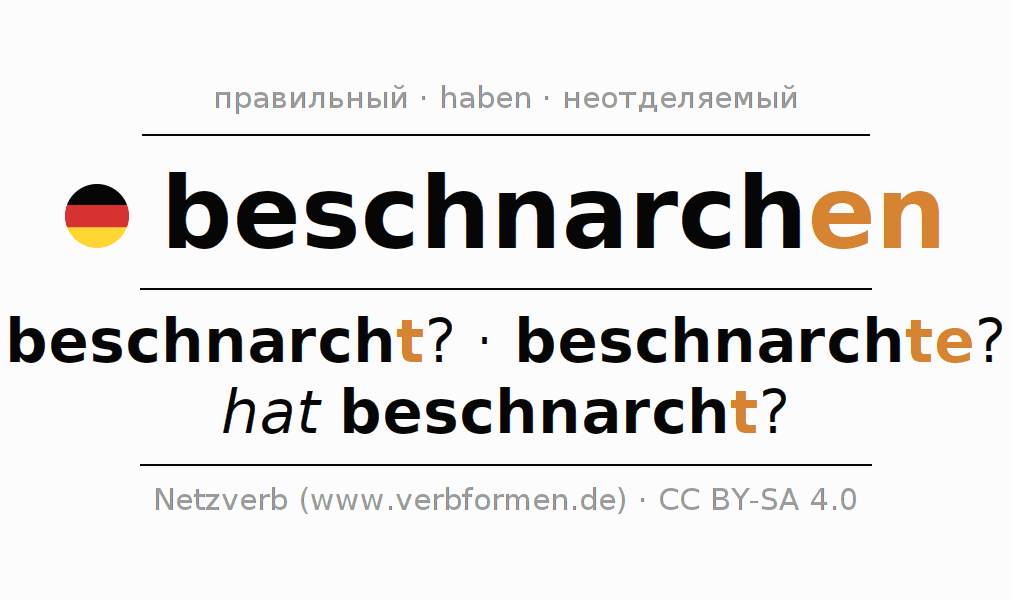 Глагол beschnarchen спрягается в индикативе Действительный залог (актив) в настоящем, прошедшем и будущем времени