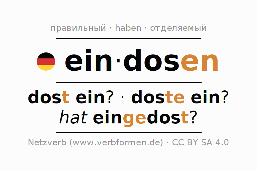 - Презенс: dos(e) (du) ein, dosen wir ein, dost (ihr) ein, dosen Sie ein