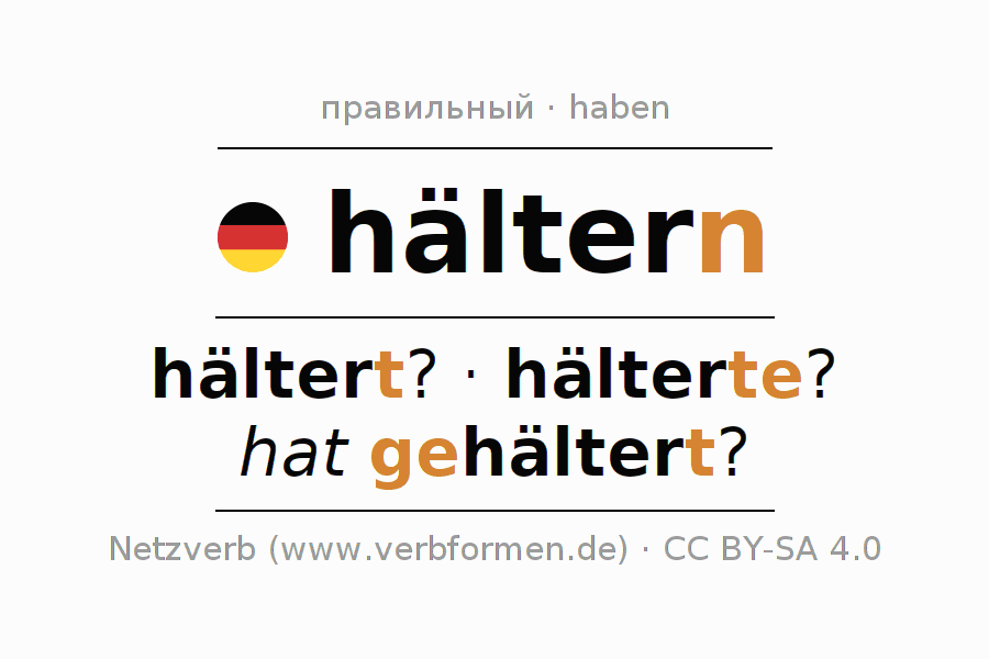 Глагол hältern спрягается в индикативе Действительный залог (актив) в настоящем, прошедшем и будущем времени